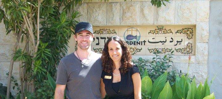in the picture, the actor with Hilly from the Yardenit, the baptismal site on the Jordan River.