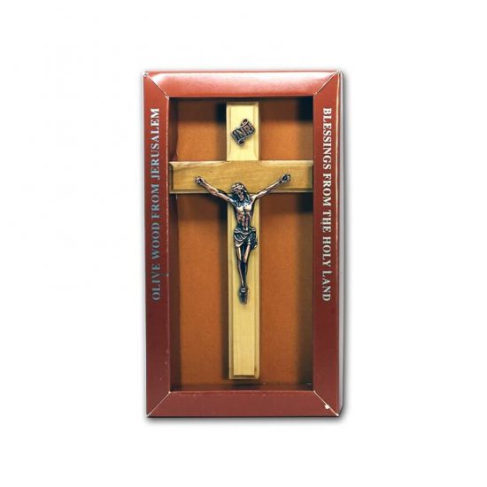 Olive Wood Cross with Crucifix, Brown Box