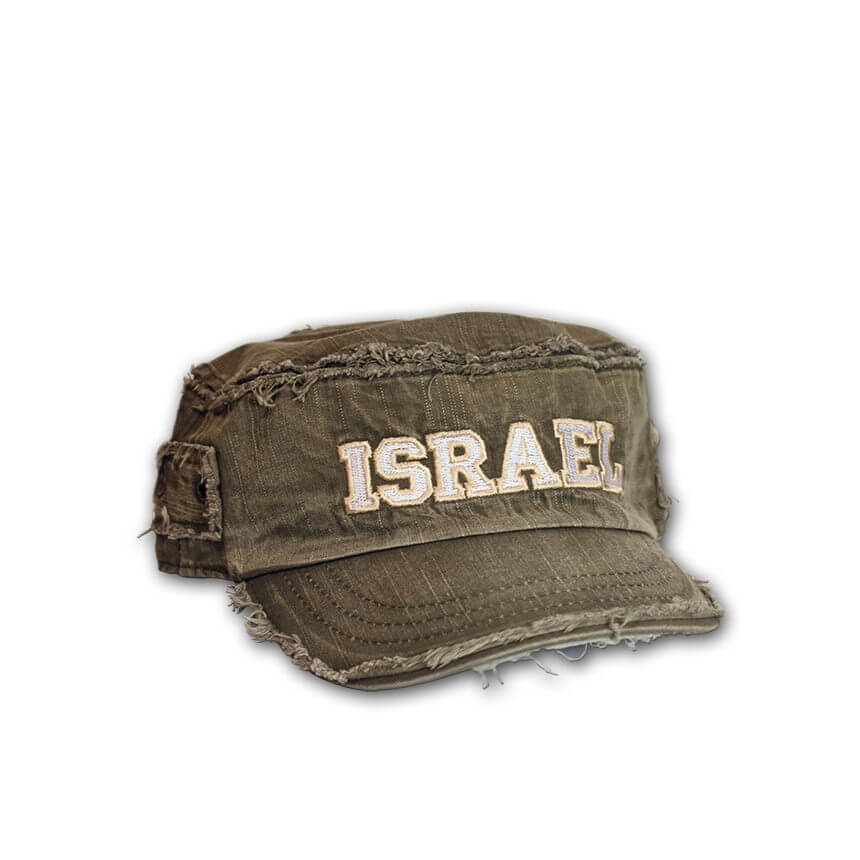 Stone-washed fashionable hat with the word “Israel” embroidered on it.