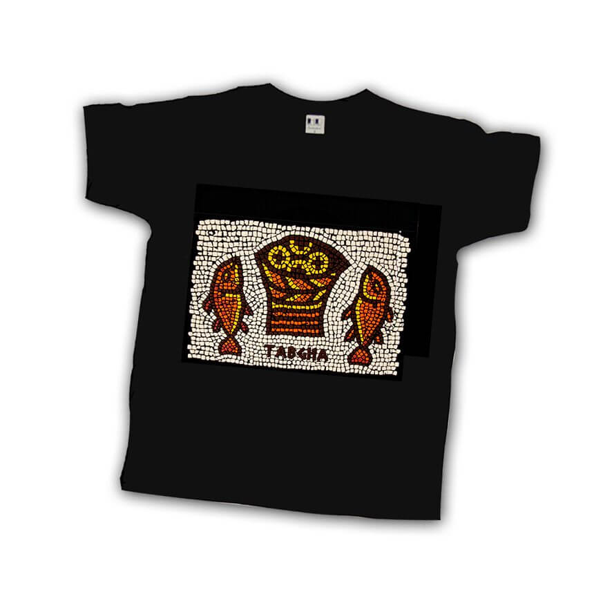 T-shirt with the print of the famous Tabgha mosaic, which is also known as a Church of Multiplication of the loaves and fish.