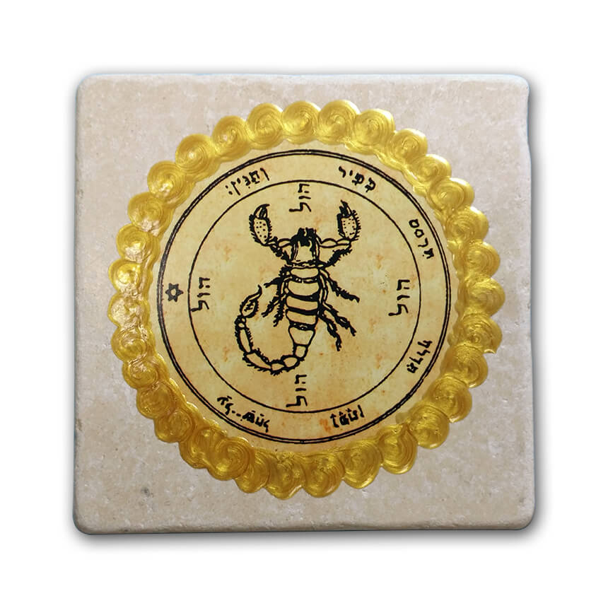 King Solomon’s Recuperation seal, lazer printed on a marble tile with a hand-painted copper trimming. For hanging or putting on a stand