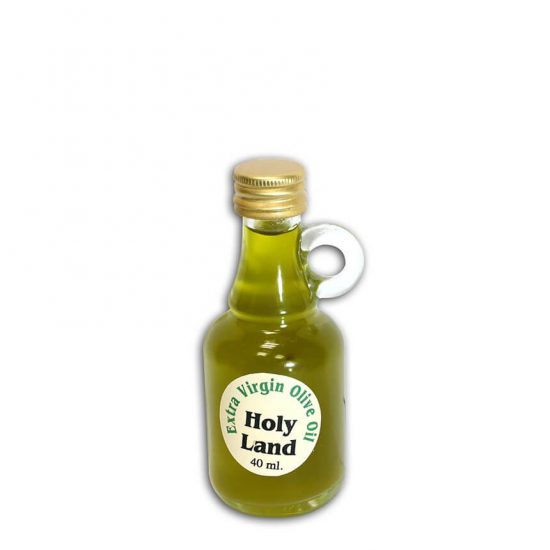 A small beautiful glass bottle in a shape of a jug contains Holy Land Extra Virgin Olive Oil that can be a great souvenir from the Land of Milk and Honey.