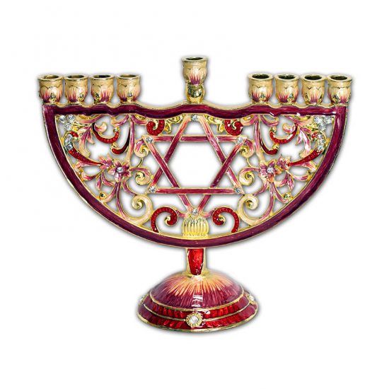 Decorate your Chanukkah with this beautiful Red Hanukkiah with Star of David.