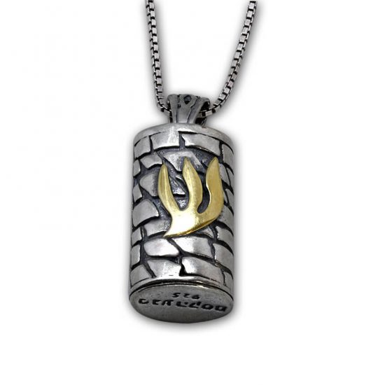 Silver Mezuza Necklace with Shadai Letter in Gold