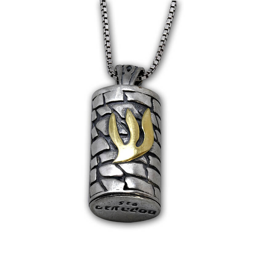 Silver Mezuza Necklace with Shadai Letter in Gold hand made in Israel.