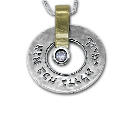 Hand made Ana BeKoach Silver Necklace. Made of sterling silver and 9 kt gold with a zircon in the center of the pendant.