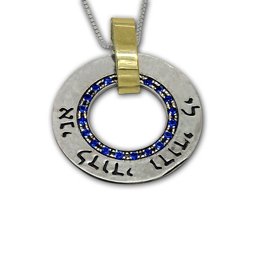 “I am my beloved’s” Necklace, Silver & Gold, Sapphires