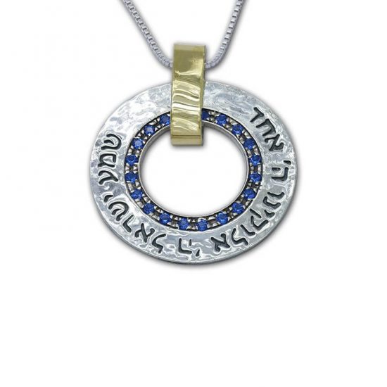 Shemah Israel Necklace, Silver & Gold with Sapphires