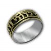 Gold and Silver Ring with Biblical Blessing. 925 Sterling silver and 9 kt gold, hand crafted.