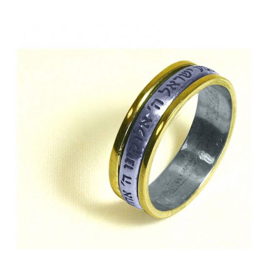 The most important for the Jewish people prayer “Shemah Israel” is inscribed on this elegant silver and gold ring.