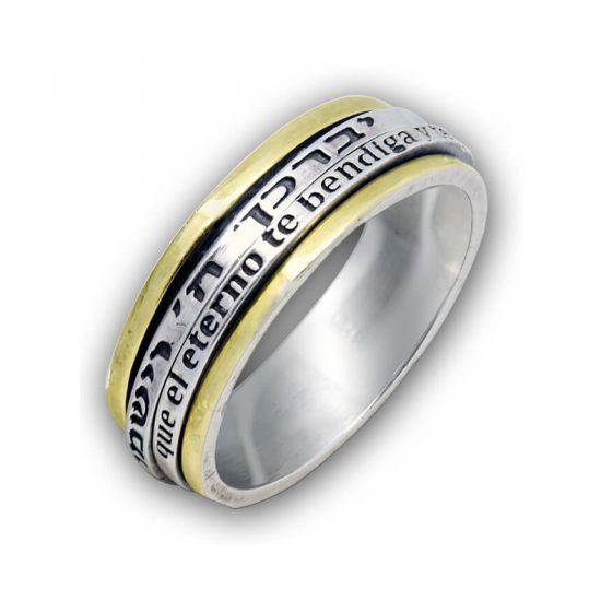 Silver and Gold Ring with Blessing in Hebrew and Spanish.