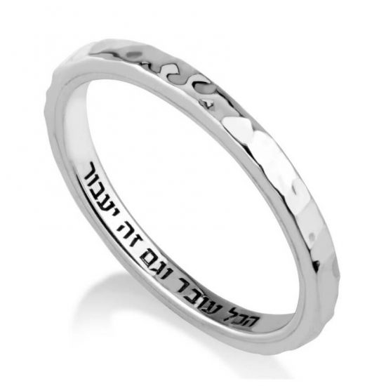 This too shall pass is engraved in Hebrew within 925 sterling silver ring.