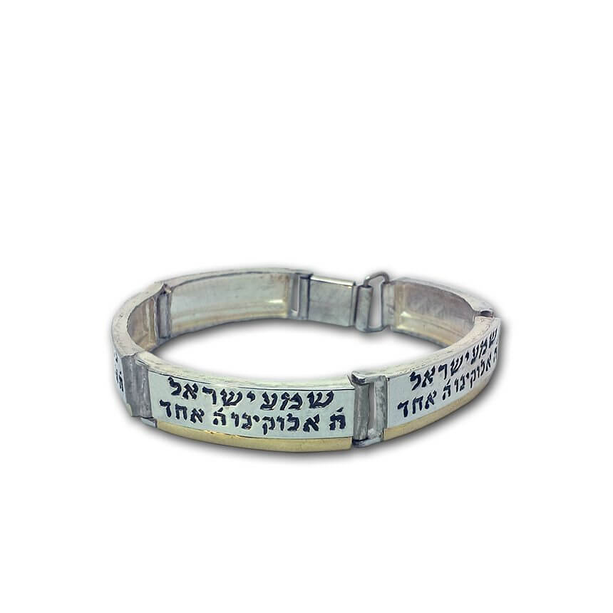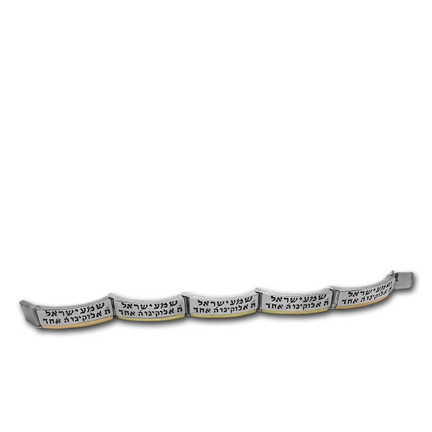 Shemah Israel Bracelet hand made of sterling silver and 9 kt gold.
