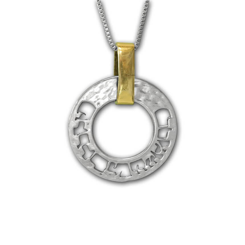 Silver and Gold Necklace with Cut Through Blessing “Keep you and bless you”. Hand made in Israel.