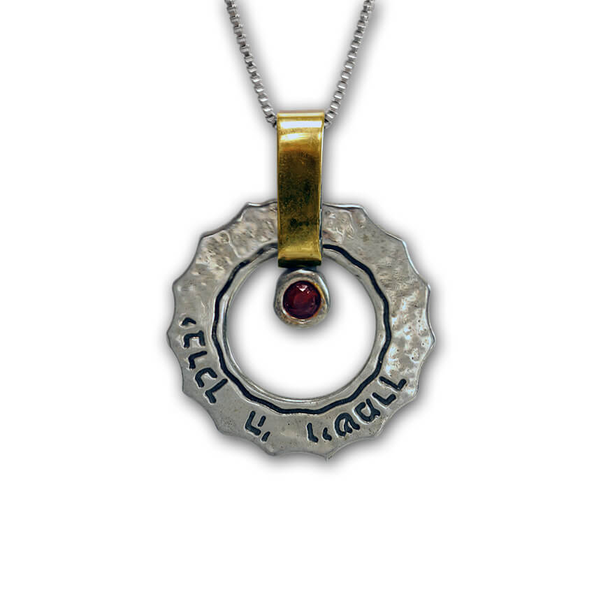 Silver and Gold Scripture Necklace “The Lord bless you and keep you”. Beautiful hand made necklace set with garnet.