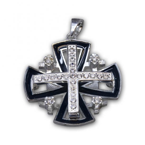 Large Silver Jerusalem Cross with Crystals and Enamel.