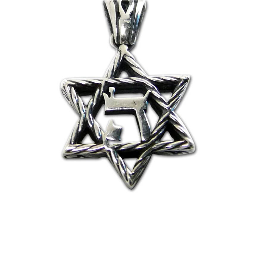 Sterling silver handmade Star of David necklace with ה (Hei) – the letter representing God written on it.