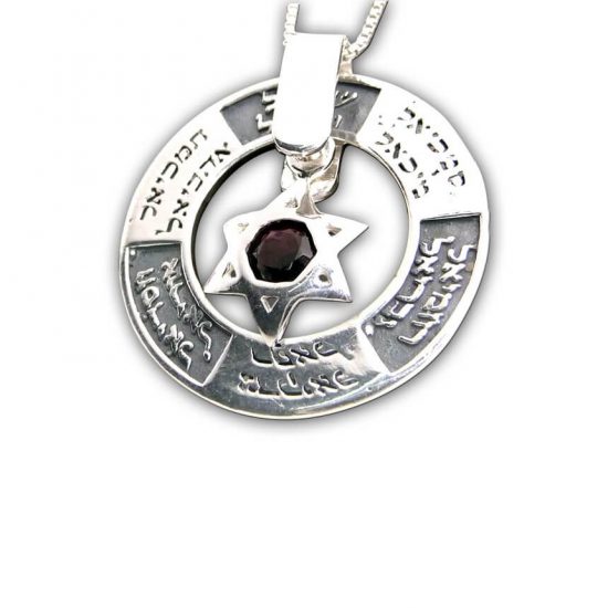 Sterling silver Star of David with Angels names pendant set with onyx.