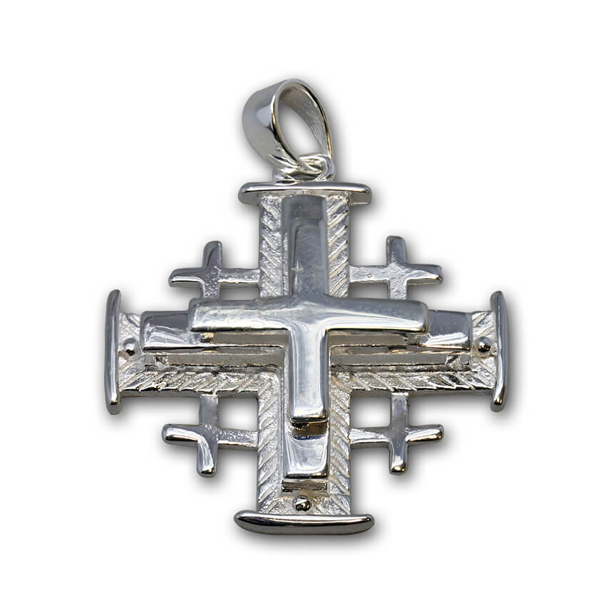 The Jerusalem Cross symbolizes Jerusalem as a center of the world and four corners of the world where Jesus’ Word spread by His Apostles.