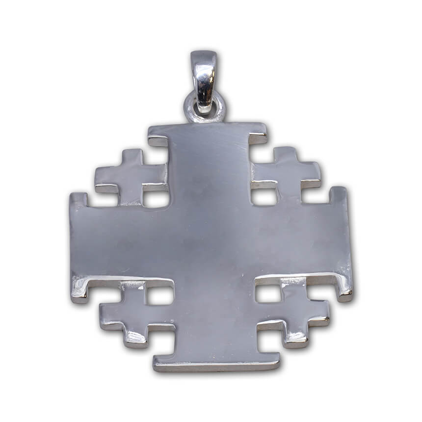 Extra Large Plain Silver Jerusalem Cross. Word “Jerusalem” is engraved on the back of this plain, yet beautiful cross.