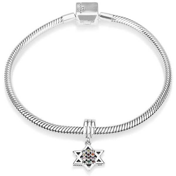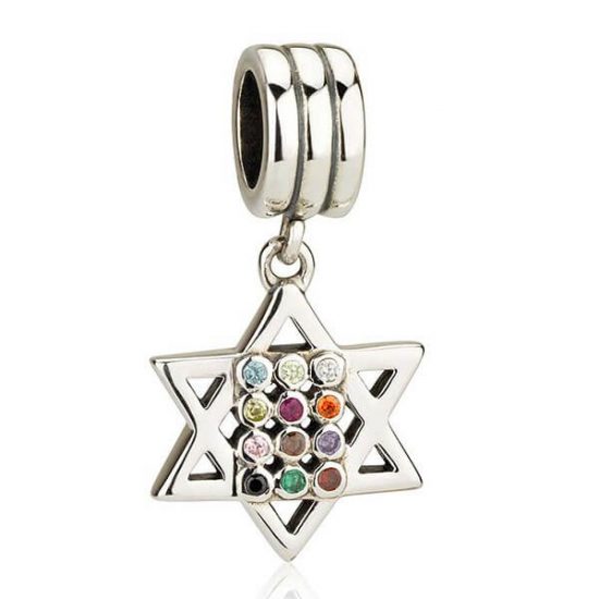 A beautiful charm in a shape of Star of David, decorated with 12 stones for 12 Tribes of Israel.